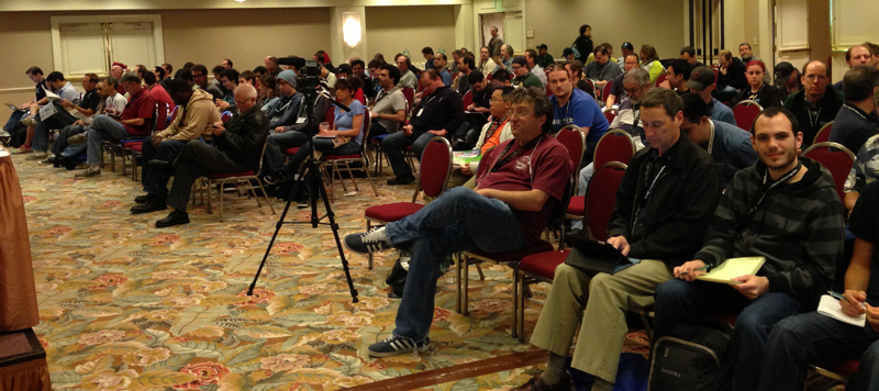 The standing-room only session was packed with devs, engaged as Brendan revealed his performance tuning tips and tricks. How-to gems like this: